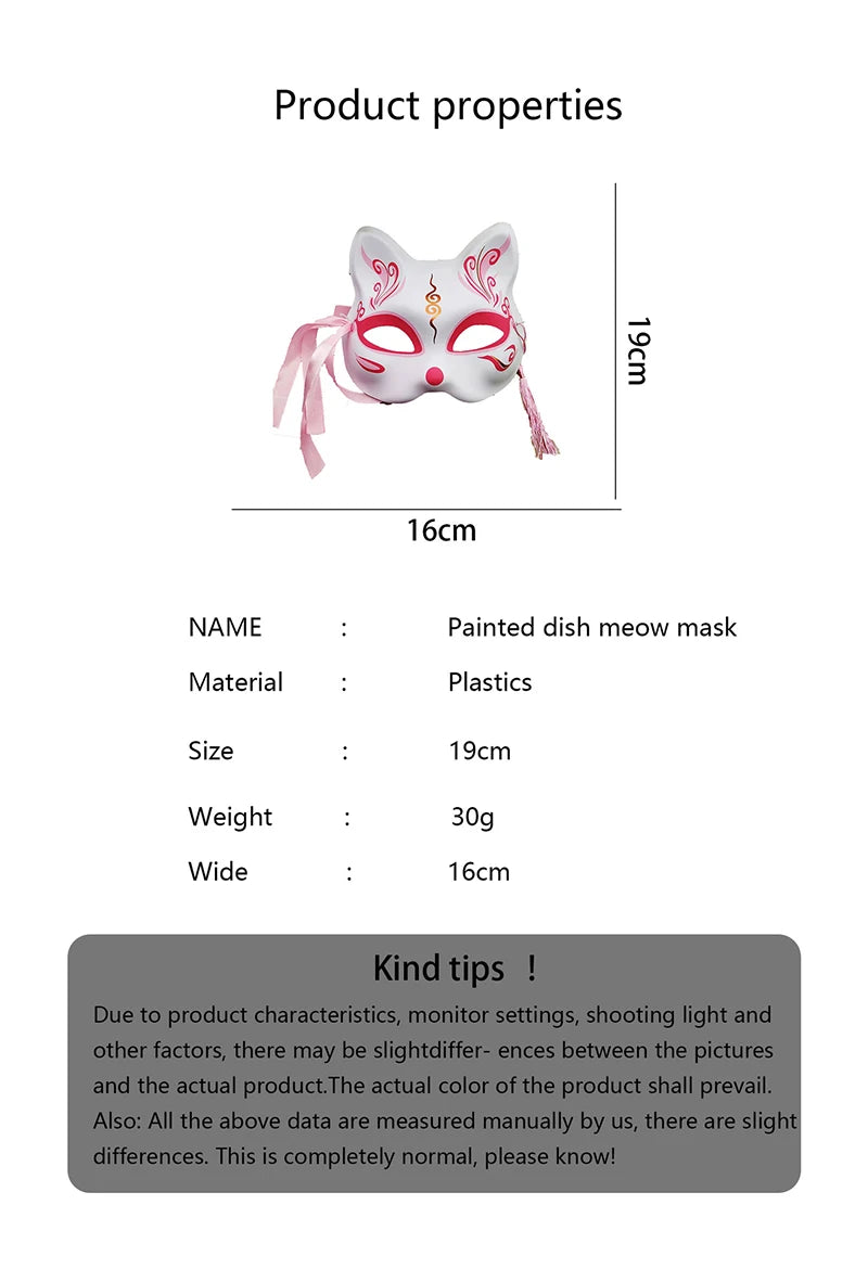 Fabriqué en plastique léger et robuste, ce masque assure confort et sécurité pendant les longues heures de port. Sa forme demi-visage permet de respirer et parler facilement, tout en conservant un look mystérieux et élégant. Le design détaillé de chat et renard s’inspire directement de l’anime, offrant un aspect réaliste et captivant pour les conventions, festivals ou séances photo cosplay.